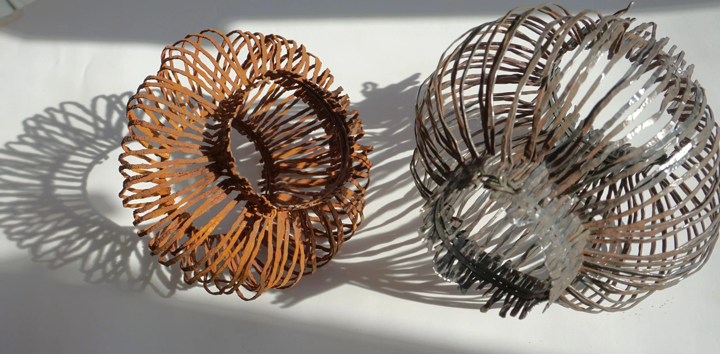 My cages are made from iron wire, forged and welded in a way that makes the structure appear deliberately unrefined yet attractive.